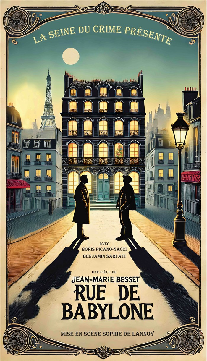 "Rue de Babylone" est une pièce contemporaine qui met en lumière la rencontre chargée de sens entre deux hommes issus de milieux diamétralement opposés : G, un directeur de journal prospère, et H, un sans-abri rusé et perspicace. Ce face-à-face dans un hall d'immeuble haussmannien sert de cadre à une exploration des dynamiques de pouvoir, des injustices sociales et des blessures du passé. Les premiers échanges sont teintés d'ironie et de reproches légers, mais progressivement, les dialogues révèlent des blessures profondes et des secrets inavoués. La pièce se transforme alors en un drame intense où les identités et les rôles se brouillent, exposant les failles de chaque personnage et la complexité de leurs rapports.