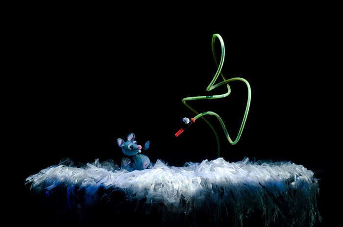 Dans ce songe musical et sans parole, Rumba plonge au coeur de l'imaginaire. Le monde autour d'elle change sans cesse : le sol flotte et se dérobe sous ses pattes, marionnettes et animations apparaissent, passent, filent et s'effacent, comme un ballet de mirage.