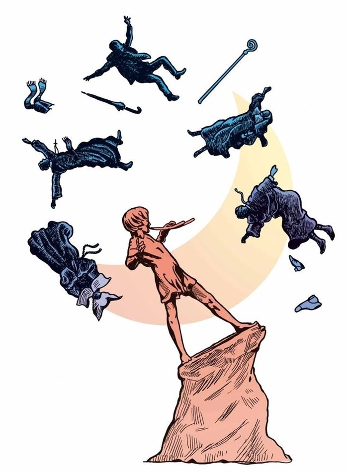 Culte et triomphal outre-Manche, ce Peter Pan dynamite de ressorts burlesques toutes les conventions de la représentation. Parodie minée de trouvailles et de dingueries, c'est la célébration d'une débâcle totale. Après Les Faux British et Le Gros Diamant du Prince Ludwig, des mêmes auteurs anglais adaptés par la même équipe française, Sacré Pan ! clôt une trilogie couronnée de deux Molières et de succès retentissants. Dans ce monstre de folies, le maître à bord Gwen Aduh met le public à contribution, l'invite hilare à un festival de gags et d'éclats, cérémonie joyeuse de toutes sortes de déconfitures artistiques.