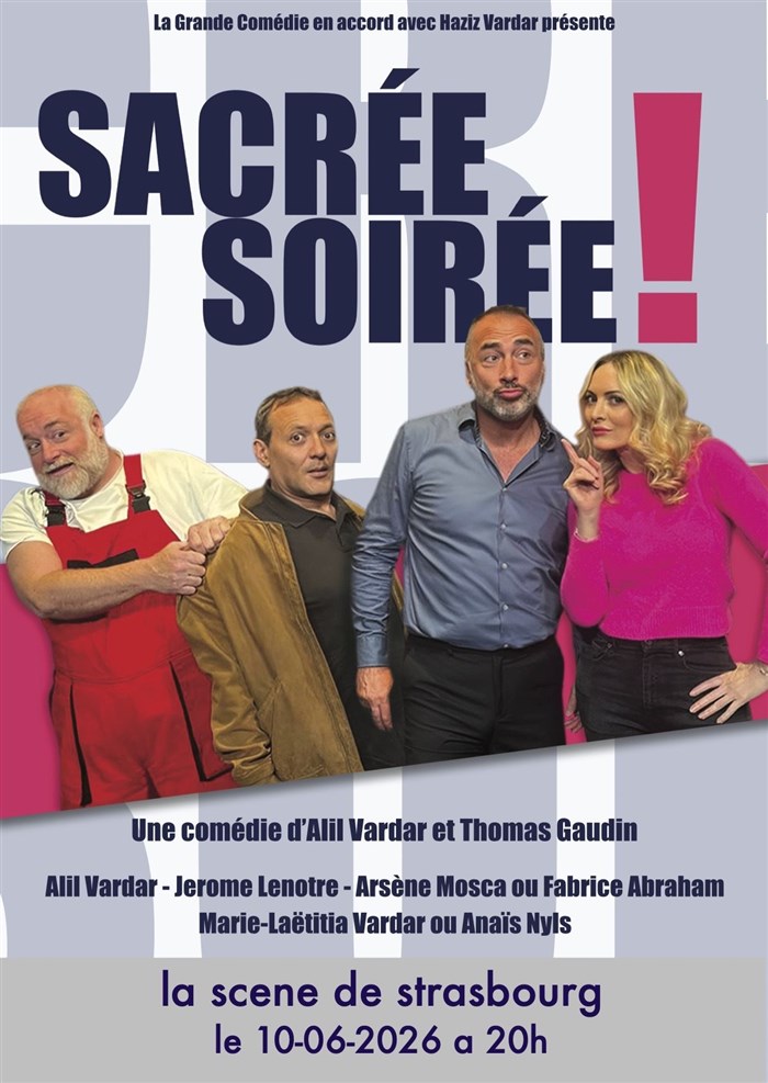 Découvre Sacrée Soirée !, qui fait partie de notre sélection d’événements de type Comédie et qui se tient ici : La scène de Strasbourg -