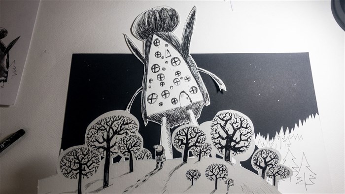 Grâce à un procédé qu'ils appellent du "ciné-papier", à mi-chemin entre concert-dessiné et théâtre d'objet, deux comédiens donnent vie à un monde miniature tout en papier dessiné, plié, découpé.