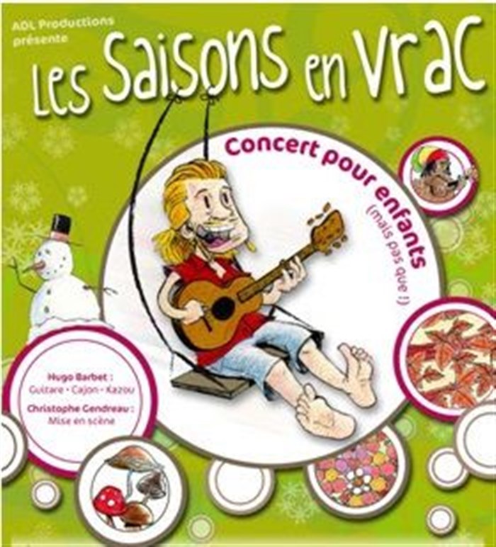 Accompagné d'une guitare, d'un cajon, d'un kazou et de ses amis les "Rasta Piafs", Hugo Barbet emmène les enfants dans un voyage festif au rythme des saisons.