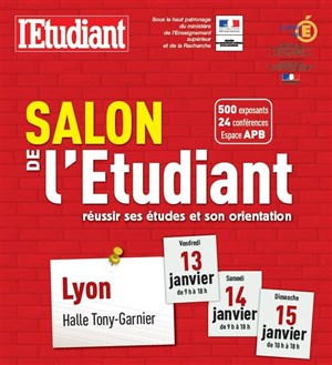 Aussi, l'Etudiant, en partenariat avec le Rectorat de l'Académie de Lyon, est heureux d'organiser le Salon de l'Etudiant de Lyon.