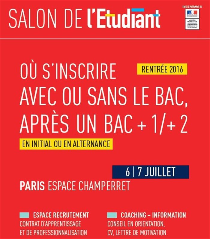 RDV dès le lendemain des résultats du Bac au salon de l'Etudiant " où s'inscrire ". Avec ou sans le Bac, après un Bac+1 ou +2 en alternance ou par le biais d'une formation initiale.