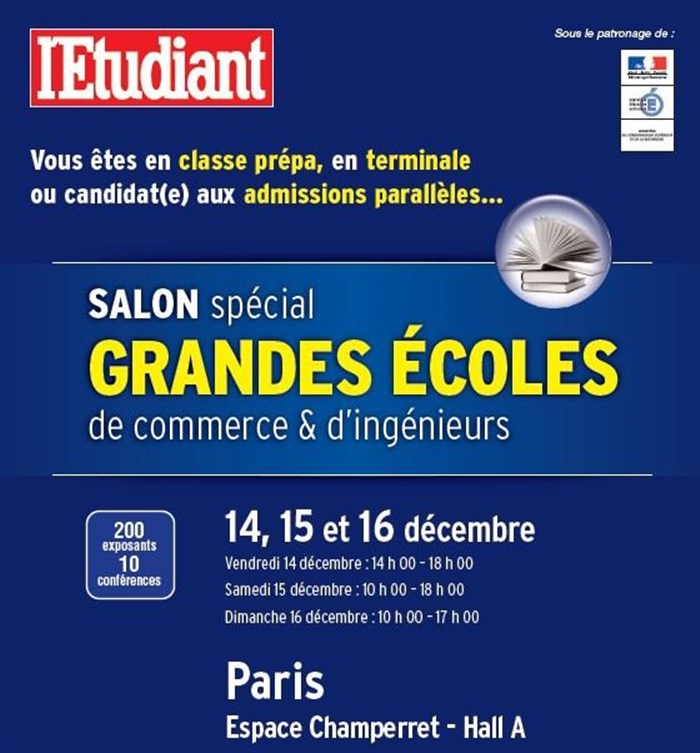 Pour aider les jeunes à trouver des réponses et à faire les bons choix, il convient de leur apporter une information claire et complète. Aussi, l'Etudiant, est heureux d'organiser le Salon Spécial Grandes Ecoles de Commerce et d'Ingénieurs.