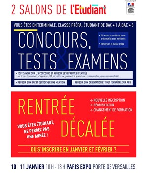 - Le salon des concours, tests et examens : 2 jours pour tout comprendre des concours et examens, les étudiants pourront assister à des sessions d'information et de méthodes.
