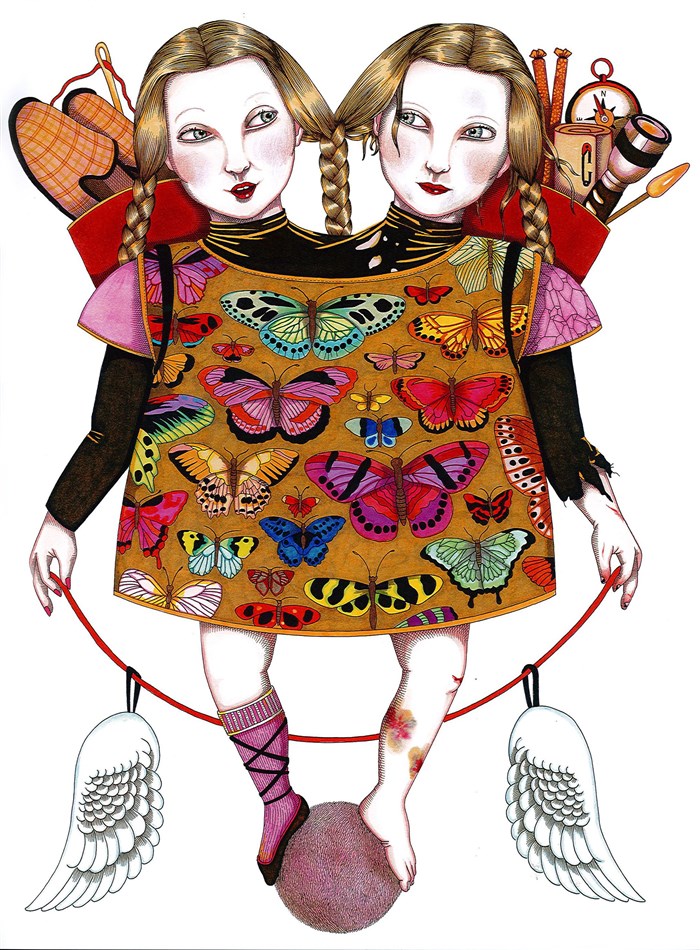 Saltimbanques est un album de famille pas comme les autres, une création partagée née de la rencontre entre une artiste et une auteure. Emmanuelle Houdart a imaginé et dessiné onze personnages extraordinaires. D'abord les siamoises, puis l'homme tronc et la femme à barbe, puis le colosse, la diseuse de bonne aventure et la lilliputienne. Onze très beaux et étranges portraits, comme autant d'invitations à imaginer pour eux des vies rocambolesques et des numéros stupéfiants.