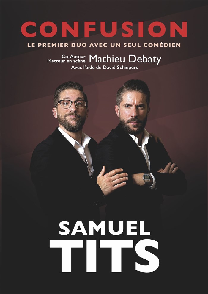 Samuel Tits comédien belge dans " Confusion",le premier duo avec un seul comédien...belge. Sur l'univers des jumeaux. Humour décalé, absurde et belge.