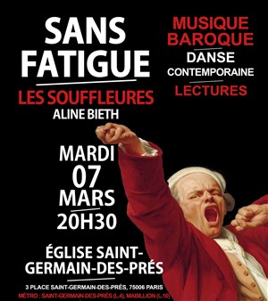 Sans Fatigue, Les Souffleures reviennent sur les planches et proposent un tableau sonore, théâtral et chorégraphique d'une Europe baroque marquée par des formes de fatigue socialement et géographiquement différenciées. Violons baroques, flûte, hautbois baroque, violoncelle baroque, basson baroque, viole de gambe, contrebasse baroque, clavecin, percussions, ils vous embarquent dans une histoire théâtralisée et chorégraphiée de la fatigue aux XVIIe et XVIIIe siècles au rythme de pièces virtuoses, dansantes ou apaisantes du répertoire baroque.