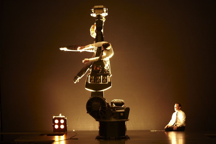 La grande héroïne de Sans objet est un vieux robot de l'industrie automobile sauvé de la casse et reconverti sur scène en bien plus qu'une machine.