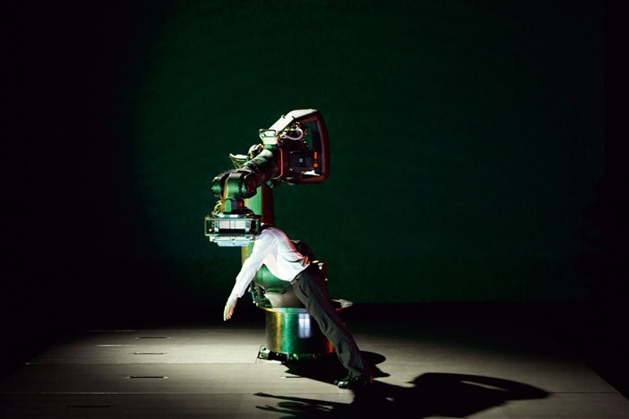 Ce rapport entre l'homme et la machine est en pleine évolution. Le robot est arrivé dans le monde industriel dans les années 70 ; l'idée est de l'extraire de son milieu en le plaçant sur scène. Il devient " sans objet ", acteur.