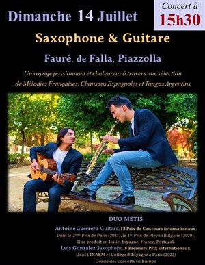 Je ne connaissais pas cette église et j'ai apprécié les belles interprétations délivrées par le Duo Métis. Ces deux jeunes et talentueux musiciens nous ont régalé avec des oeuvres de Fauré, Villa Lobos, Manuel de Falla et Guastavino. Merci pour ces belles découvertes s'harmonisant avec les sonorités du saxophone et de la guitare.