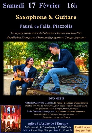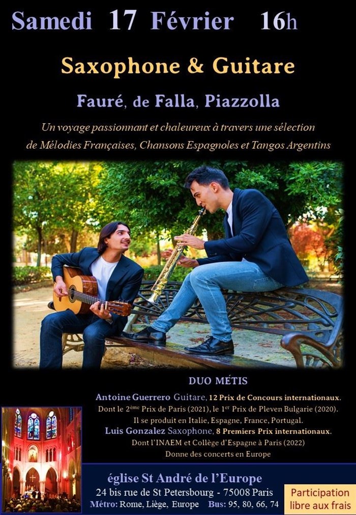 L’événement Saxophone & Guitare : Fauré, de Falla, Piazzolla de type Musique classique, organisé ici :