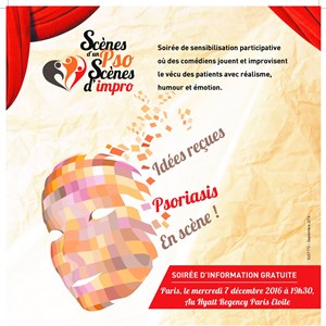 " Scènes d'un pso, Scènes d'impro " est une campagne d'information et de sensibilisation sur le psoriasis qui, par l'improvisation théâtrale, vise à dépasser les préjugés et à libérer la parole des patients afin de les aider à rompre le cercle de l'isolement.
