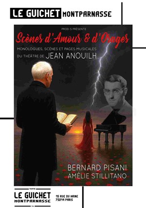 Ces monologues, scènes et pages musicales ont été minutieusement choisis avec Colombe Anouilh, sa fille chérie. Scènes d'Amour et d'Orages (titre soufflé par Anouilh lui-même lors d'une conversation téléphonique), se veut tonique, éclaté, burlesque et émouvant, à l'image même du génie de cet auteur d'une étonnante modernité.