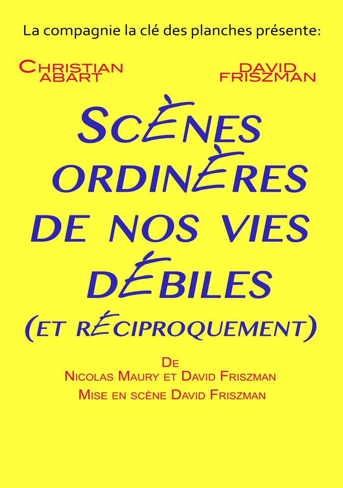 L’événement Scènes ordinaires de nos vies débiles (et réciproquement) de type Comédie satirique, organisé ici :