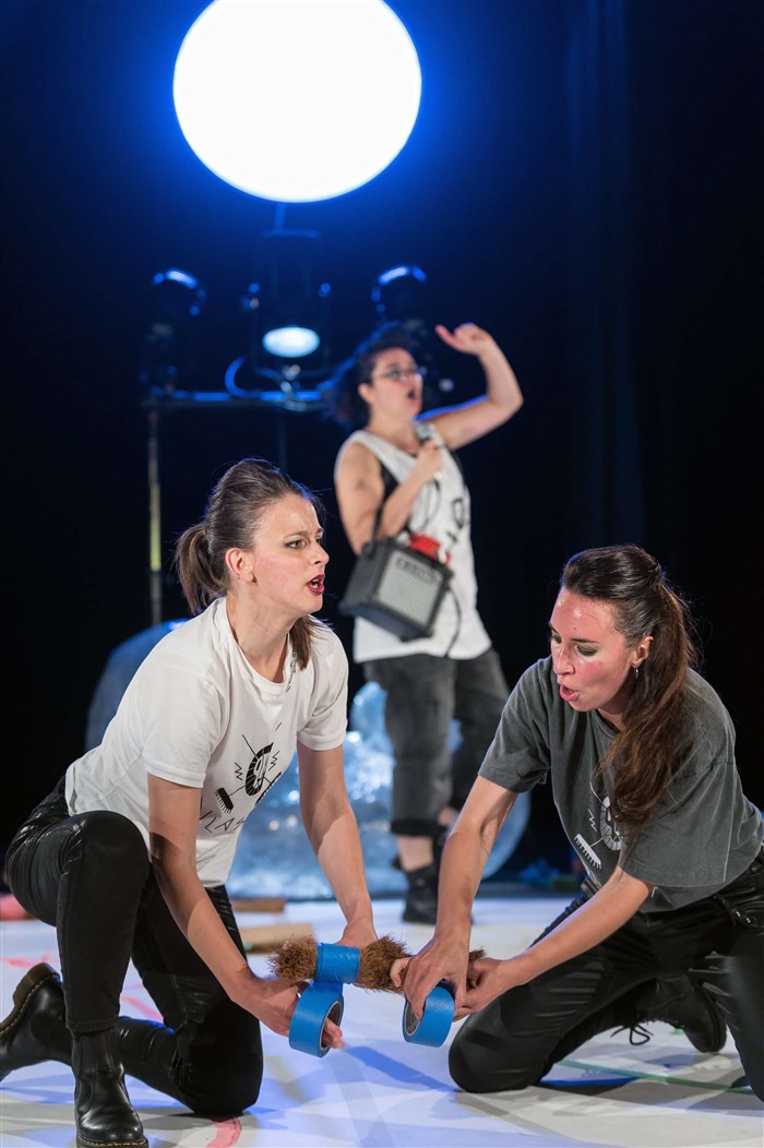 Trois rockeuses-danseuses-marionnettistes explorent avec une invention réjouissante les possibilités offertes par le ruban adhésif... Qui en deviendrait presque un peu magique ! Avec son pouvoir fascinant, le scotch métamorphose l'espace, le peuplant de paysages infinis et de cabanes rassurantes. Dans un grand élan collectif, les jeunes spectateurs sont invités à déconstruire ces architectures précaires, comme pour mieux rêver leur propre manière d'habiter le monde.