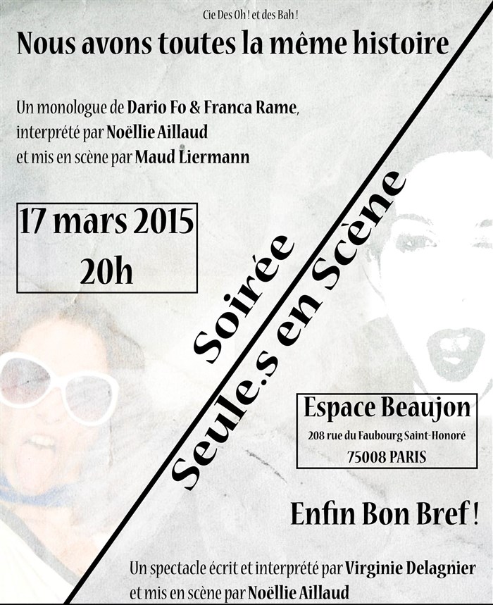 Une double soirée seule en scène avec " Enfin Bon Bref ! " et " Nous avons toutes la même histoire" ...