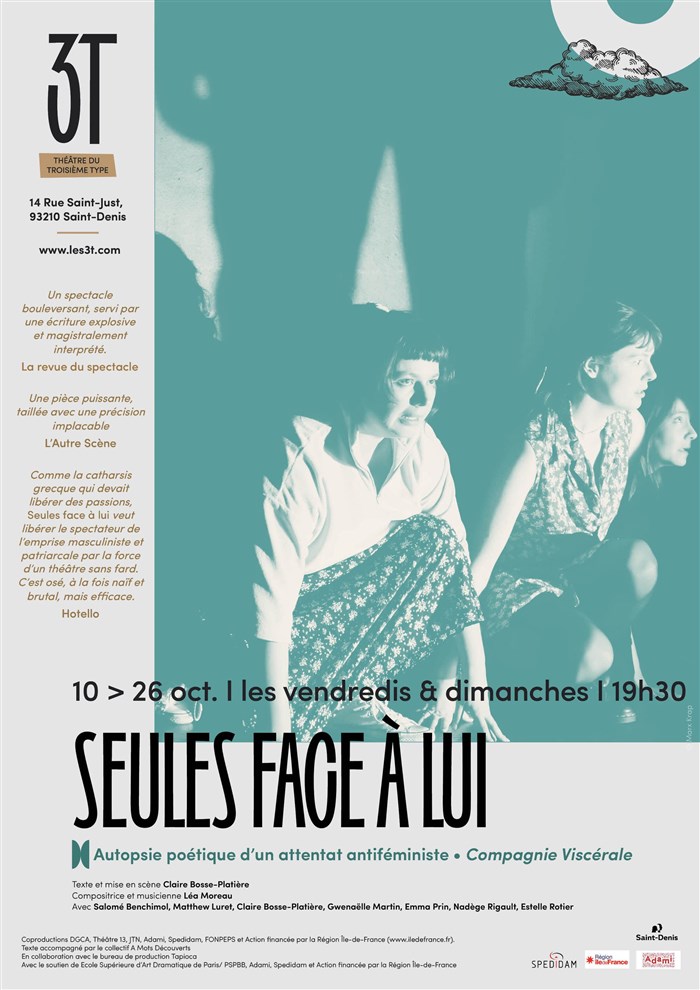 Seules face à lui s'inspire de la tuerie antiféministe de Polytechnique à Montréal, où, en 1989, un homme armé a fait sortir une cinquantaine d'hommes d'une salle avant d'abattre les femmes présentes. Le spectacle explore ce drame à travers une écriture fragmentaire mêlant fiction et mémoire : avant, après, et trente ans plus tard. Le plateau est nu, la lumière sculpte l'espace et la tension. Aucune arme, aucun sang : c'est au·à la spectateur·rice d'imaginer l'horreur. Une mise en scène sobre, presque clinique, qui rend visible l'invisible, dans un va-et-vient entre cauchemar, drame familial et mémoire collective. Une tragédie contemporaine sur la haine des femmes, sa violence, ses silences. Un théâtre politique, incarné, pour questionner ce que ces actes disent de nos sociétés.