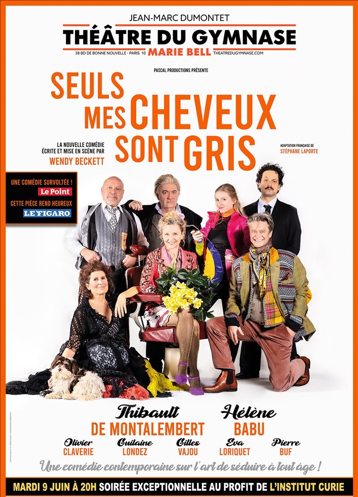 Inspirée du Barbier de Séville, Seuls mes cheveux sont gris est une comédie satirique et contemporaine qui s'amuse des contradictions de notre époque, où l'on se croit affranchi... sans jamais l'être tout à fait quand il s'agit d'aimer. Georges, comte romantique (Thibault de Montalembert), affronte son rival Bartolini (Olivier Claverie) pour conquérir la fantasque Déborah (Hélène Babu). Autour d'eux, une galerie de personnages hauts en couleur orchestre une mécanique jubilatoire de quiproquos, de stratégies de séduction et de rivalités amoureuses. Entre héritage et modernité, certitudes affichées et élans incontrôlés, la pièce dresse une fresque joyeusement décalée de nos rapports amoureux. Une comédie élégante, pétillante et irrésistiblement drôle.
