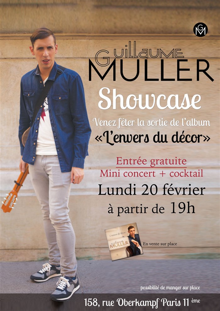 Pour fêter la sortie de son premier album "L'envers du décor", Guillaume Muller et son équipe vous invite pour une soirée mini concert et cocktail.