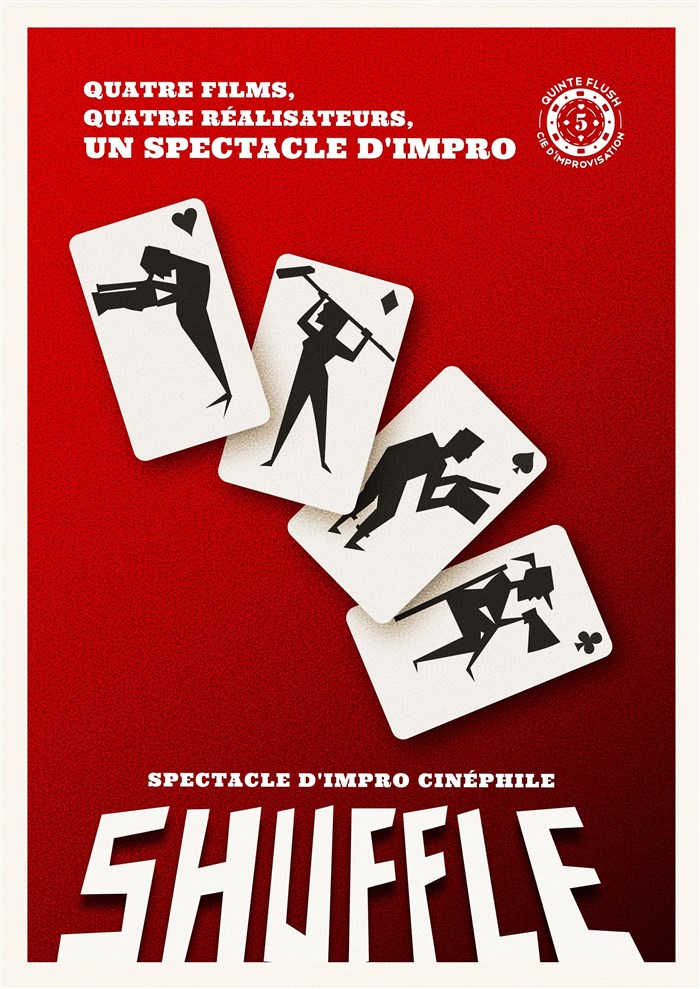Shuffle c'est une multitude d'histoires, des comédiens et des directeurs qui prennent des risques pour créer le meilleur film en direct live. C'est la confrontation de quatre couleurs et c'est vous qui tirez les cartes ! Vous voulez parier avec nous ? Qui raflera la palme ?