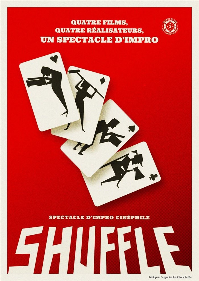 Shuffle c'est une multitude d'histoires, de réals, mais ce soir, surtout... d'acteurices ? Pour cette occasion Quinte Flush sort les grands moyens : 5 invité·es prestigieu·ses viennent rejoindre la troupe pour vous proposer des films à grande échelle, des succès de box-office, bref des Blockbusters !