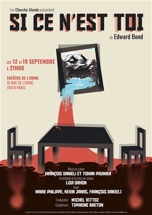 Trois comédiens évoluent dans un espace dénudé et nous livrent le texte d'Eward bond, Si ce n'est toi avec sincérité. Dans l'appartement aseptisé, habité par un couple, on y voit le vide créé par l'individualisme ou l'individualisme créé par le vide. Le pire de l'humain traduit par l'excès d'Ordre générant comportements mécaniques, froideur, non-pensée et violence. La mise en scène plonge le spectateur dans un monde de désespoir et les comédiens jouent avec brio.