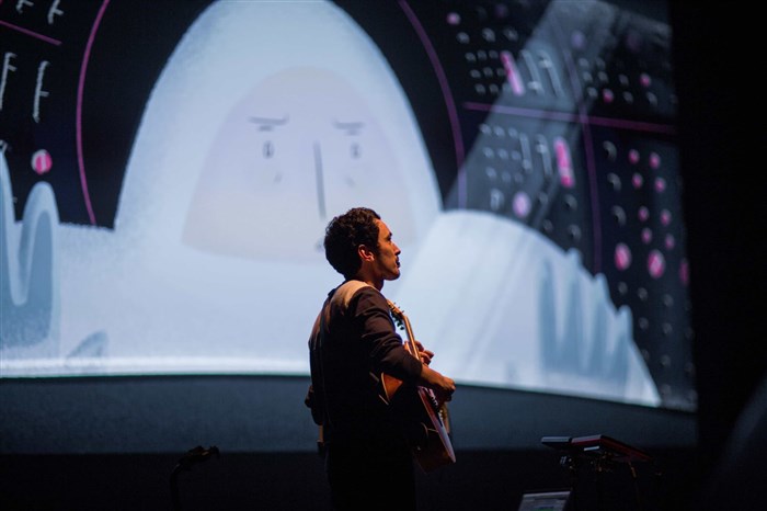 Entouré de pads, de synthés et d'instruments acoustiques, Les Gordon imagine des paysages sonores autour de cinq courts métrages d'animation.