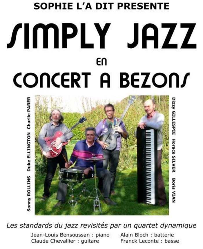 Les standards du jazz revisités par un quartet Piano, Guitare, Basse et Batterie.
