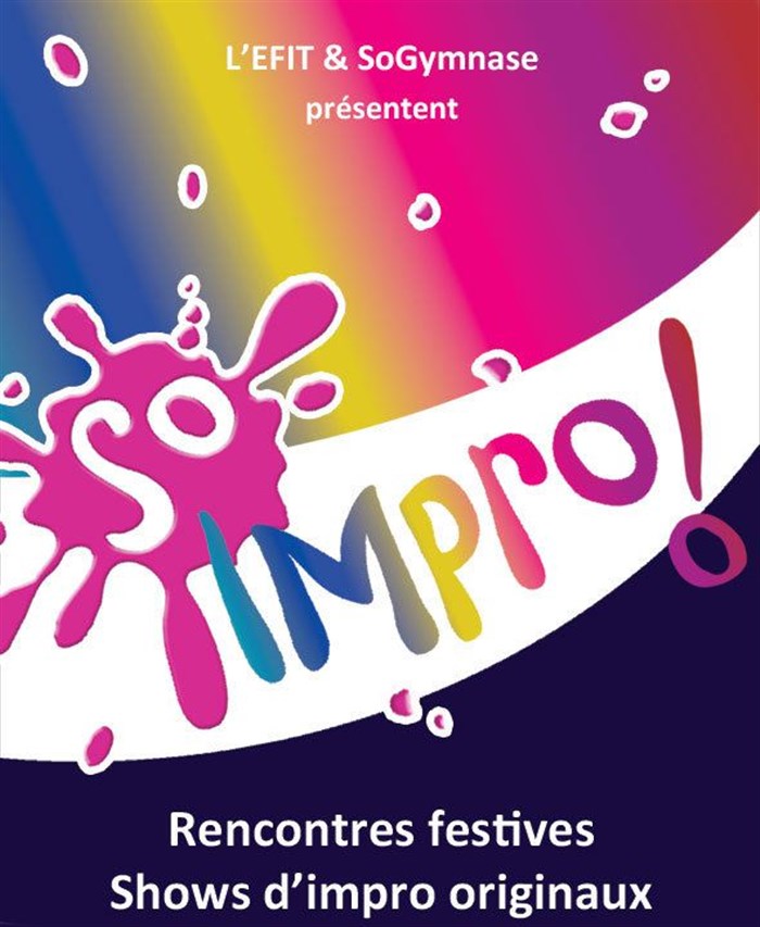 Sur les thèmes du public et encadrés par des pros ou semi-pros de l'EFIT, le SoImpro explorera tout au long de l'année des formes de spectacles d'impro classiques (rencontres, cabarets, catchs), plus originaux (long form, challenges), ou... expérimentales (?!!) pour toujours surprendre les spectateurs. La création est instantanée, le show interactif et l'imaginaire débridé.