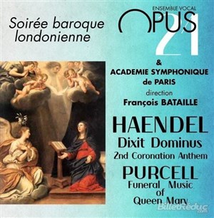 Dixit Dominus et extrait des Coronation Anthems de Haendel, Music for the funeral of queen Mary de Purcell. Par l'ensemble vocal Opus 21.