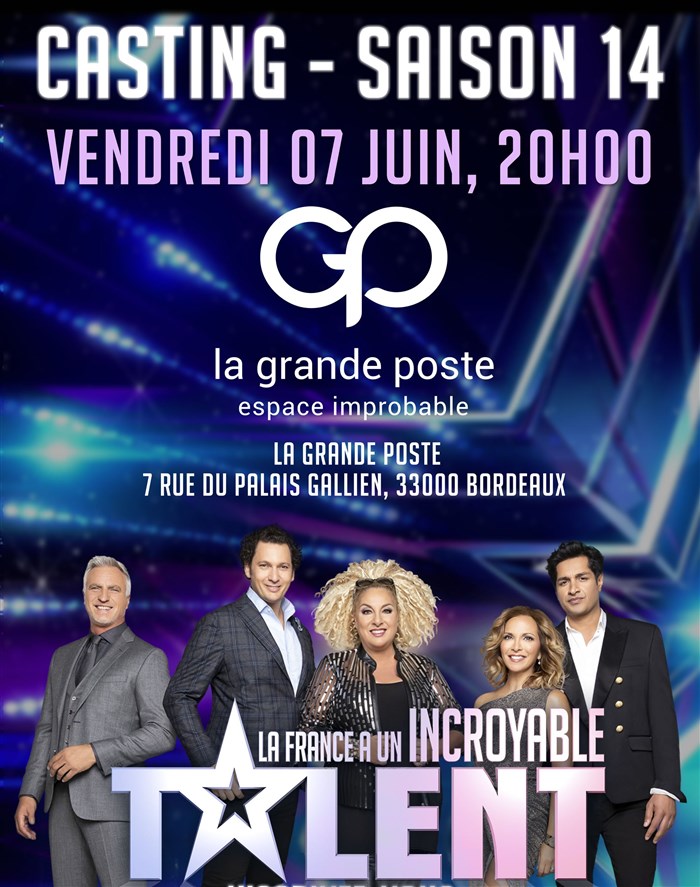 L’événement Soirée casting La France a un incroyable talent de type plateau d'artistes, organisé ici : La grande poste - Espace improbable - Bordeaux, n'est plus disponible à la vente.
