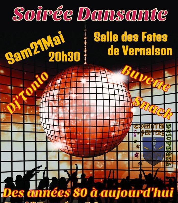 Le comité des fêtes de vernaison organise une soirée dansante à la salle des fêtes de Vernaison !