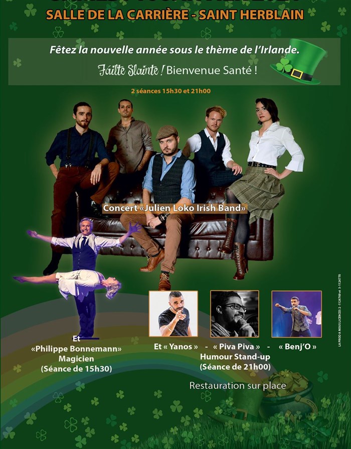 Venez fêter la nouvelle année sous le thème de l'Irlande. Spectacle-concert festif dans une atmosphère typique Irlandaise.