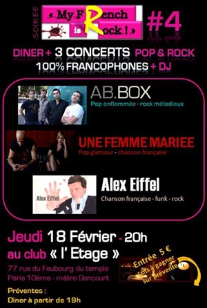 À propos de Soirée My French Is Rock : AB.Box, Une Femme Mariée et Alex Eiffel en concert