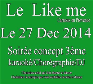 On continue dans les soirées new concept au like me : repas + animation karaoké et animation just dance et vous finirez avec une soirée DJ.