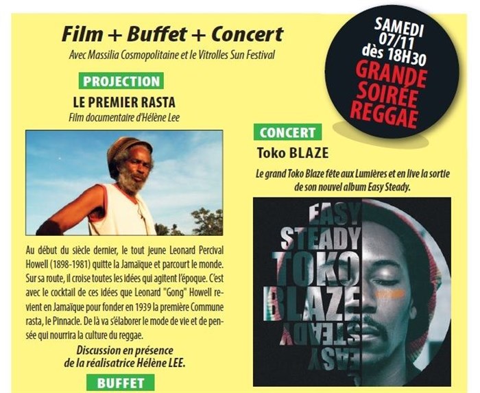 Soirée Reggae Film Le Premier rasta + buffet + concert Toko Blaze, toutes les séances