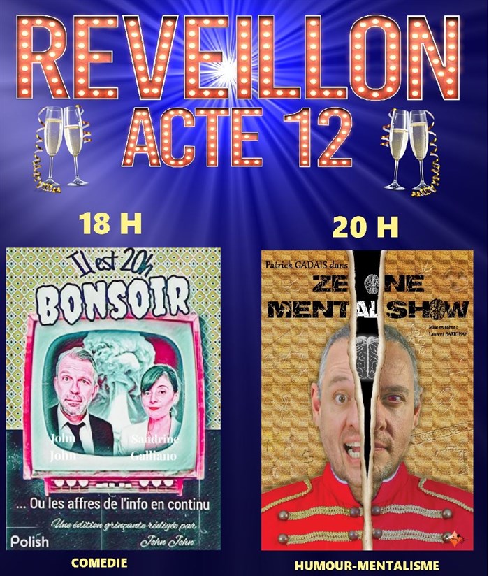 L’événement Soirée Réveillon : Il est 20h, Bonsoir + Ze One Mental Show de type Comédie, organisé ici :