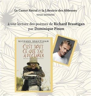 Cette présentation sera suivie d'une lecture des poèmes de Richard Brautigan, par Dominique Pinon.