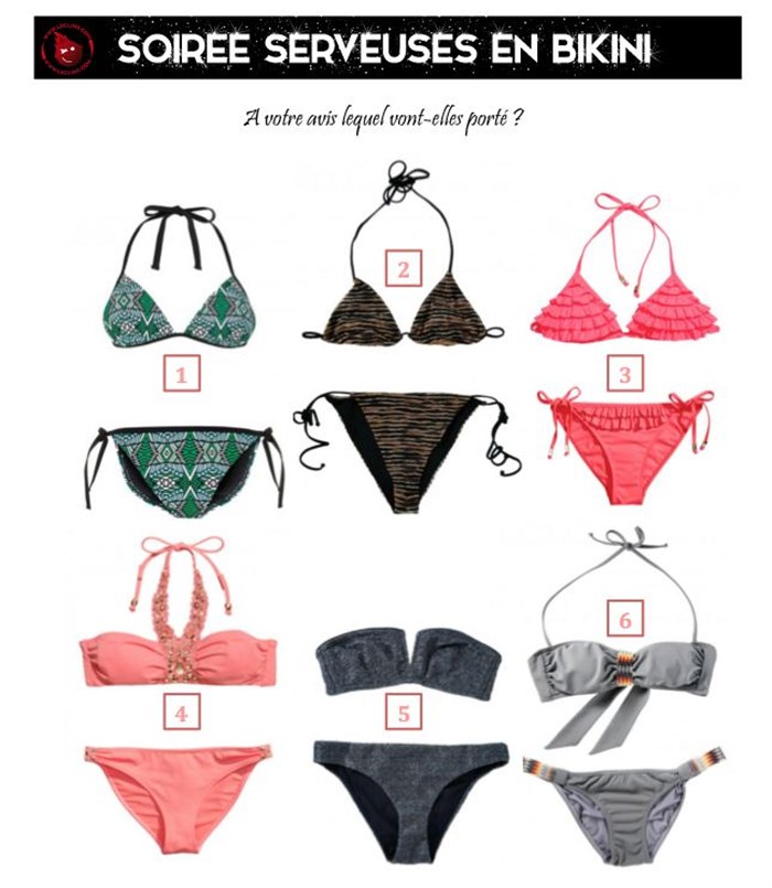 1/ Soirée serveuses en bilini, serveurs en maillot : Un avant-goût de l'été pour ce nouveau concept ... Les serveurs et serveuses, et ce jusqu'à la fin de l'été, prendront vos commandes et vous servirons en bikini !