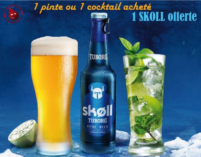 2/ Skoll offerte : Pour inaugurer ce nouveau concept, il vous sera proposé une offre spéciale sur la Skoll ! Pour chaque pinte ou cocktail acheté, une Skoll vous sera offerte, de 20h à 00h ! La Skoll, c'est quoi ? Venez le découvrir !