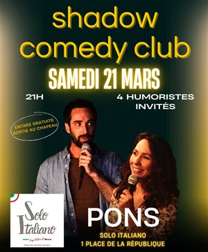 Découvre Shadow Comedy Club | Solo Italiano - Pons, qui fait partie de notre sélection d’événements de type plateau d'artistes et qui se tient ici : Solo Italiano -
