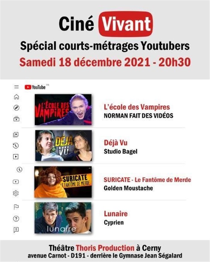 Soirée youtubers avec les courts métrages des youtubers tendance comme Norman, studio Bagel, Golden Moustache, Cyprien...