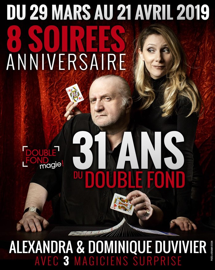 Alexandra et Dominique Duvivier fêtent dignement l'anniversaire du Double Fond avec 3 artistes invités qui se relaieront lors de 8 soirées exceptionnelles dans des spectacles spécialement écrits pour l'occasion !