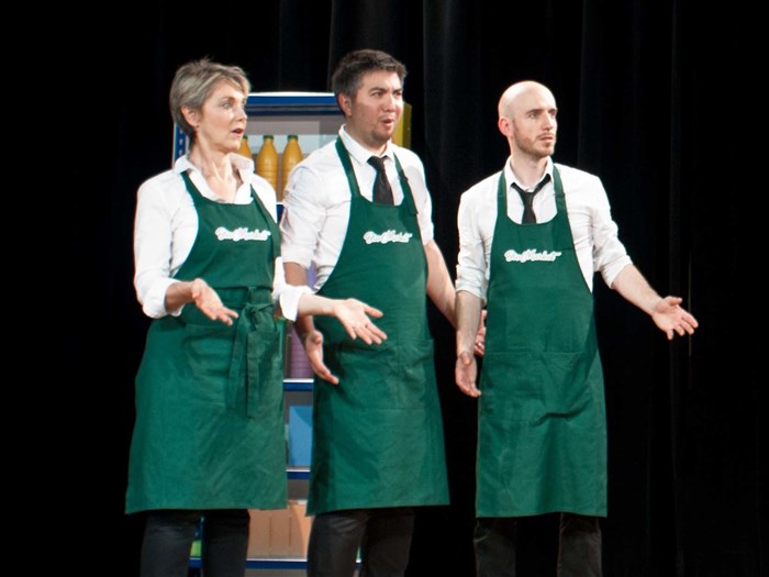 On joue, on chante, c'est une comédie musicale : chansons bio artisanales, production locale, labels équitables, garantie sans glyphosate !