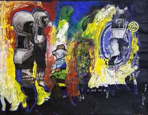 L'art de Soly Cissé est marqué par l'ambivalence ; celle-ci caractérise des figures qui intègrent plusieurs registres de représentation. Ainsi, dans "Les Initiés", des êtres indéfinissables semblent appartenir à des mondes lointains. Deux d'entre eux affichent le hiératisme de statues gardiennes d'un lieu sacré. Des référents issus du religieux ? Il ne s'agit cependant pas d'enfermer l'inspiration de l'artiste dans les limites étroites d'un patrimoine " africain ", mais au contraire de déceler comment des éléments culturels participent d'une démarche globale ouverte sur le monde contemporain.