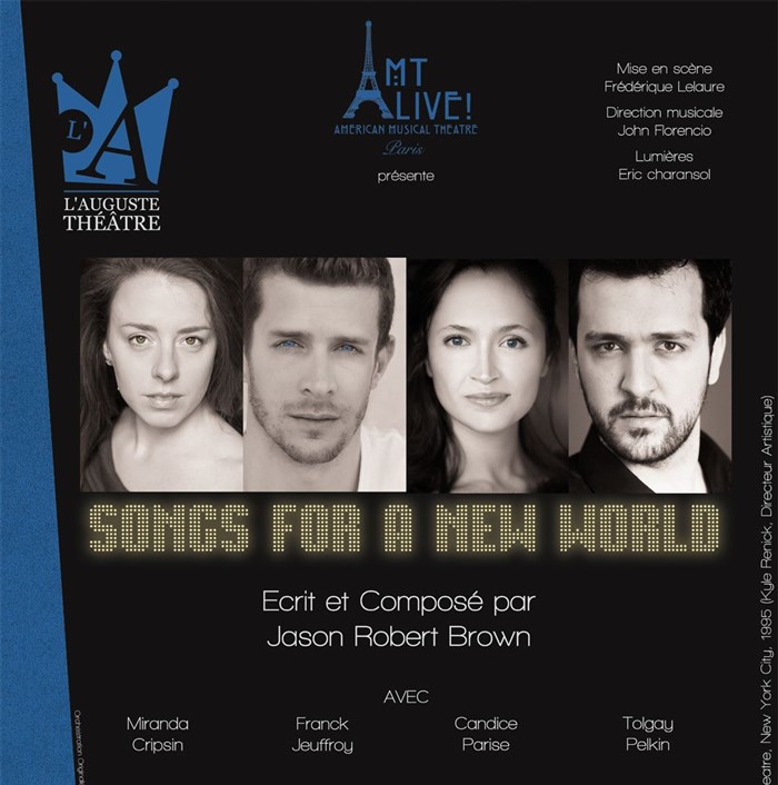 If you want to hear soul-lifting songs, but don't ask for the performer to do any acting, go to the opera. If you want to see heart-gripping characters, but don't care for music, go to a straight play. However, if you are one of the rare audience members that demands both from from the show and its performers, go to L'Auguste Théâtre and see Songs for a New World. Among all of the comédie musicale shows I have attended over the years in Paris, this is a rare gem that I simply must recommend to all of you. I promise, you cannot be disappointed.