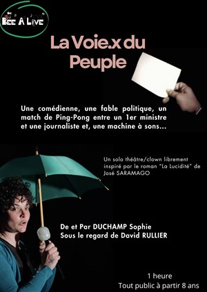 Une comédienne en action, une fable politique, un match de Ping-Pong entre un 1er ministre et une journaliste et, une machine à sons...