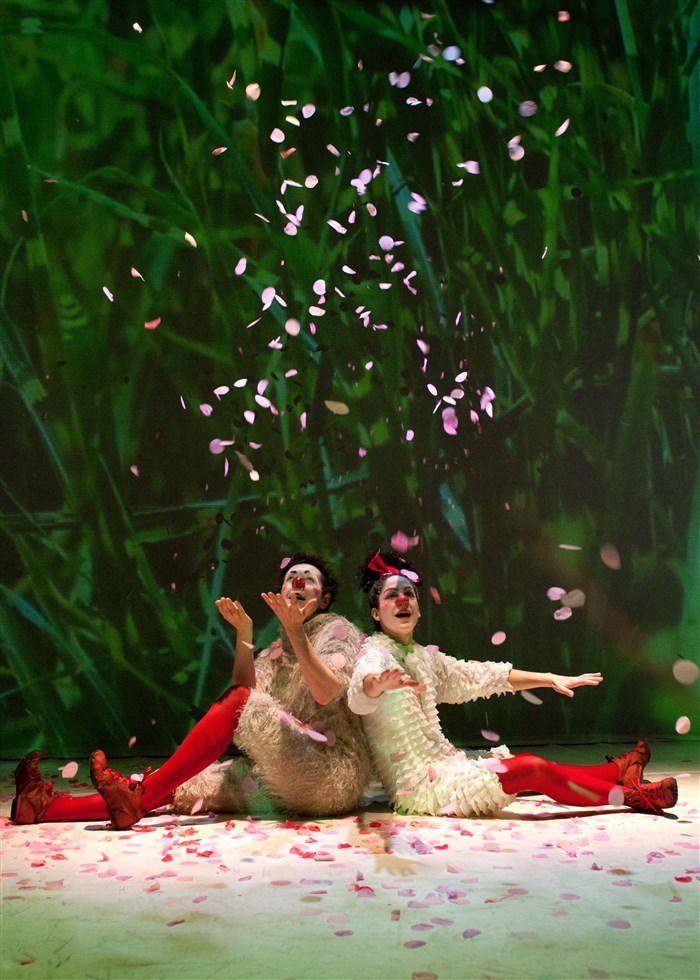 Duo clownesque et poétique sans parole sur l'air et le vent, pour les petits.
